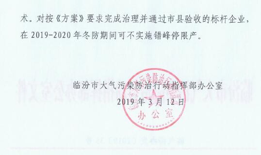 日前,山西临汾印发《临汾市2019年钢铁、焦化行业深度减排实施方案》。方案要求: