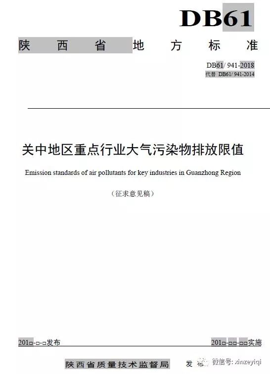本标准是对《关中地区重点行业大气污染物排放限值》(DB61/941-2014)的修订。