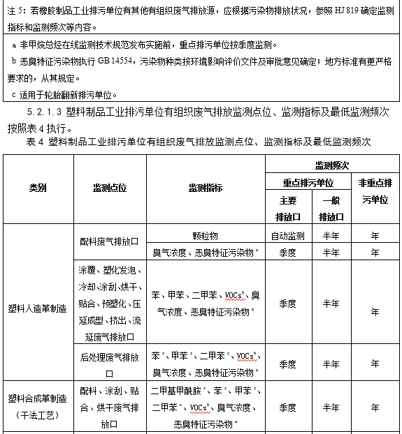5.2.1.2橡胶制品工业排污单位有组织废气排放监测点位、监测指标及最低监测频次按照表3执行。
