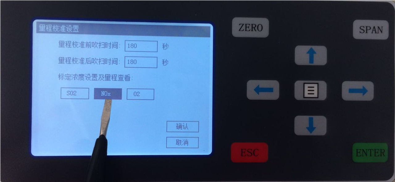 2.5 SO2标气浓度值设置完成,按ESC返回上一级后,选择NOx: